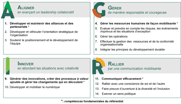 Parmi les modalités d’apprentissages complémentaires proposées, le parcours AGIR offre des formations en présentiel qui s’appuient sur l’expertise pédagogique du CUFC dans le développement de formations adaptées aux réalités des gestionnaires. Ce parcours vient soutenir le développement des quatre compétences fondamentales du référentiel : la communication efficace, la gestion mobilisante des ressources humaines, la gestion des changements et le développement de partenariats stratégiques.