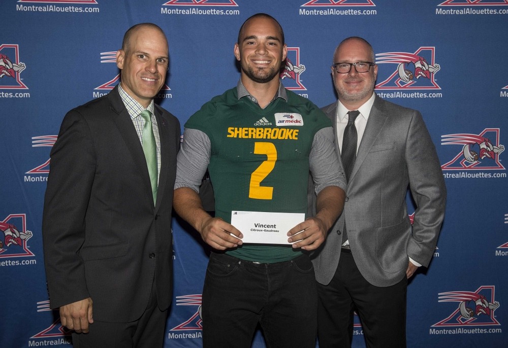 Le receveur de passes Vincent Cléroux-Gaudreau et à l'ailier rapproché Olivier Émond (leadership), de la formation de football Vert & Or de l’Université de Sherbrooke, méritent tous deux des bourses des Alouettes de Montréal pour la saison 2015.