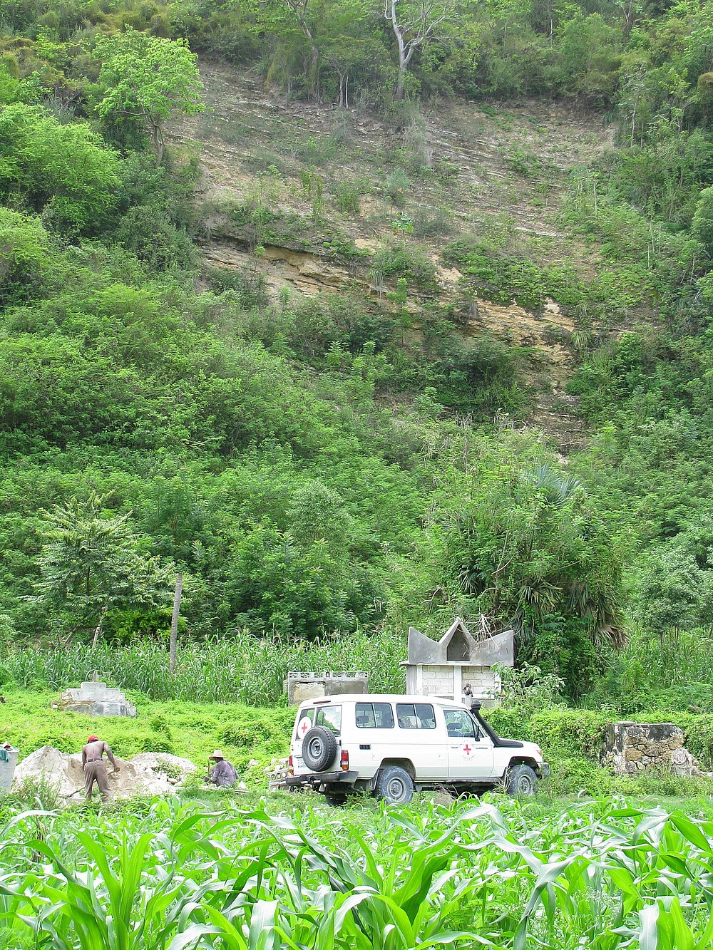 À Jacmel, les autorités estiment que le tiers des familles ont perdu leur maison lors du séisme. Située de l'autre côté de l'île, la ville repose sur un relief montagneux et les routes en terre battue compliquent les déplacements. «La moindre précipitation de pluie alerte les habitants, explique Vicky Chainey, car elle peut provoquer systématiquement une inondation. Je me souviens d'une expédition où nous avons pris 4 heures et demie pour franchir une distance de 83 km. La voiture restait coincée dans les chemins boueux et nous devions traverser des rivières dont le niveau d'eau avait dépassé la portière en moins d'une heure.