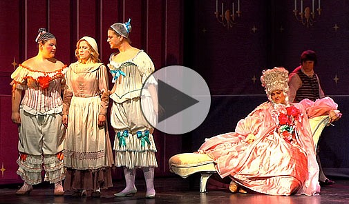 La foule a été conquise, le 30 mars, alors que Cendrillon et sa belle-famille prenaient vie sur la scène du Vieux-Clocher de l'Université de Sherbrooke. Durant quatre soirs, dans une salle bondée, l'opéra présenté par l'École de musique et mis en scène par Normand Chouinard a provoqué bien des rires et des moments féériques. Robes à crinoline, redingotes ornées d'or et perruques à cornettes nous transportaient tout droit dans ce conte bien connu de Perrault. Deux heures de ravissement mettant fièrement en vedette 20 étudiantes et étudiants en chant de l'UdeS. Un conte de fées qui se termine fort bien pour l'École de musique, qui a pu faire découvrir ses talents à plus de 1200 personnes!