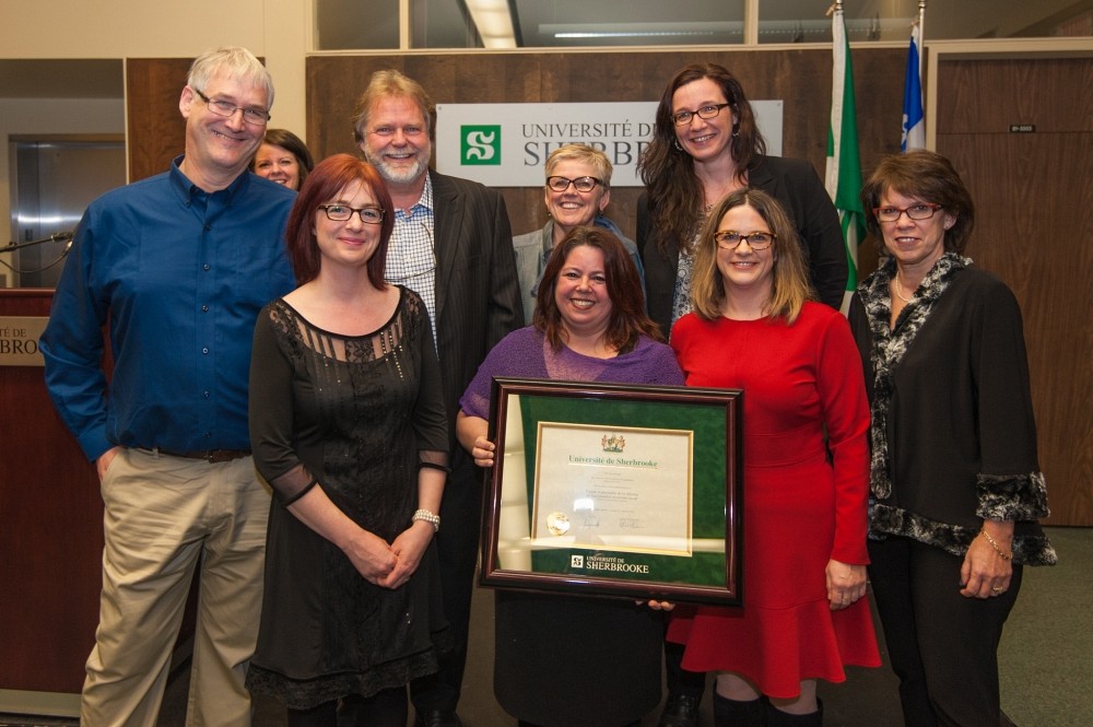 Afin de souligner le travail accompli pour offrir une formation d’avant-garde en travail social, l’Université de Sherbrooke a remis le prix Grande distinction en enseignement universitaire 2016 – volet équipe – au groupe qui a travaillé à la récente réforme du baccalauréat, composé de Nathalie Delli-Colli, Suzanne Garon, Roch Hurtubise, Pierre Laganière, Julie Lafleur, Annie Lambert, Esther Montambault et Mylène Ouellet.