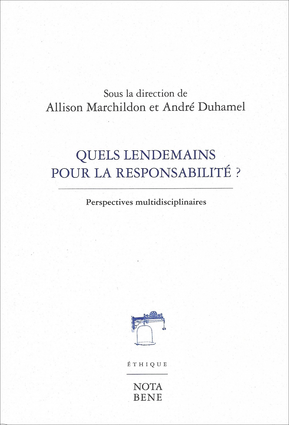 Ce paradoxe plaide en faveur d'un réexamen des approches traditionnelles de la responsabilité, à la lumière des pratiques actuelles. Il s'agit donc, ultimement, de répondre à la question qui anime cet ouvrage collectif : quels lendemains pour la responsabilité? On ne peut y répondre sans un élargissement de la perspective dans laquelle nous envisageons la notion de responsabilité, pour l'inscrire dans des approches résolument multidisciplinaires et ancrées dans la pratique. C'est à un tel exercice prospectif, à la fois exigeant et essentiel, que se sont livrés les neuf chercheurs dont les réflexions sont ici réunies.