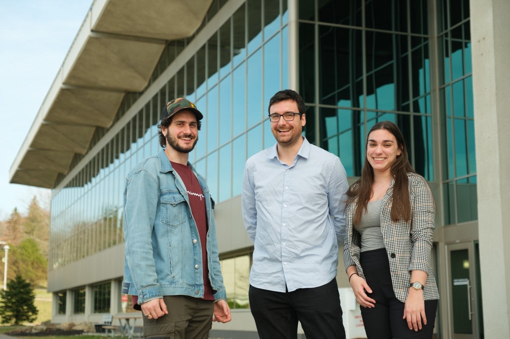 Christopher Pacheco, Thomas Crozet et Chloé Vaudry, les personnes étudiantes lauréates. Marie-Pier Vaudry, aussi lauréate, est absente sur la photo.