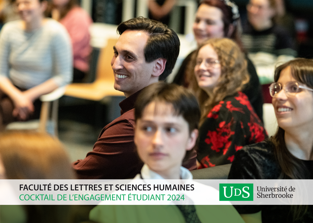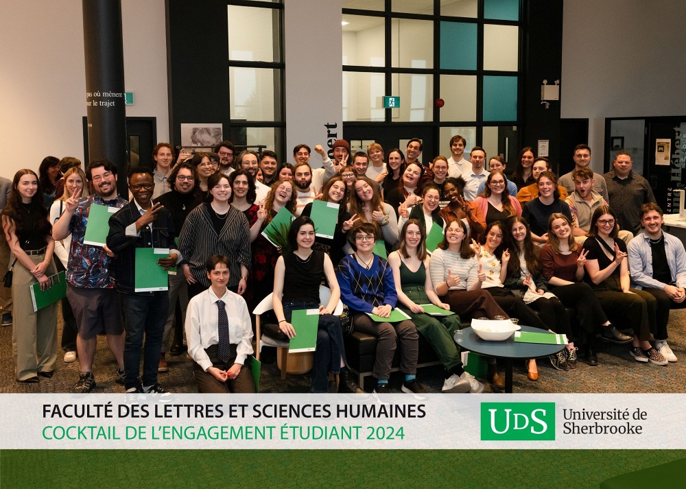 Le 2 mai dernier, une soixantaine de personnes étudiantes ont participé au cocktail de l’engagement étudiant organisé par la Faculté des lettres et sciences humaines. Cette cérémonie visait à souligner leur implication dans la vie étudiante au sein de la faculté.