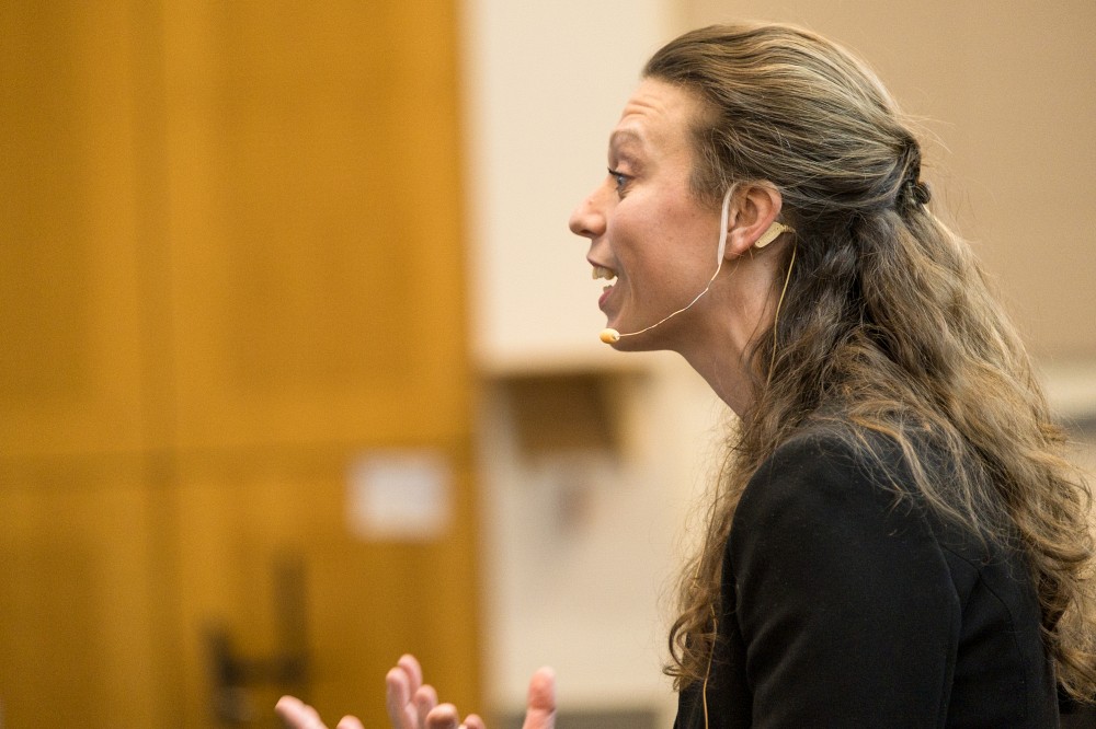 Accompagnée de son poupon et de son conjoint, Andréane Le May, étudiante à l’École de musique, a été sélectionnée par les membres du jury pour représenter l’UdeS le 30 mars à Montréal, à l’occasion de la finale nationale. À partir de l’expression « accorder ses violons », l’étudiante a abordé l’écoute, le débat et l’harmonie.