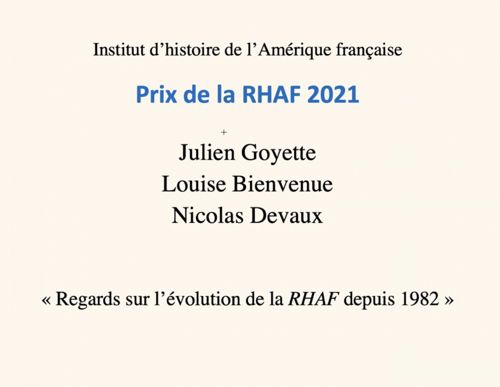 À propos du Prix de la Revue d’histoire de l’Amérique française