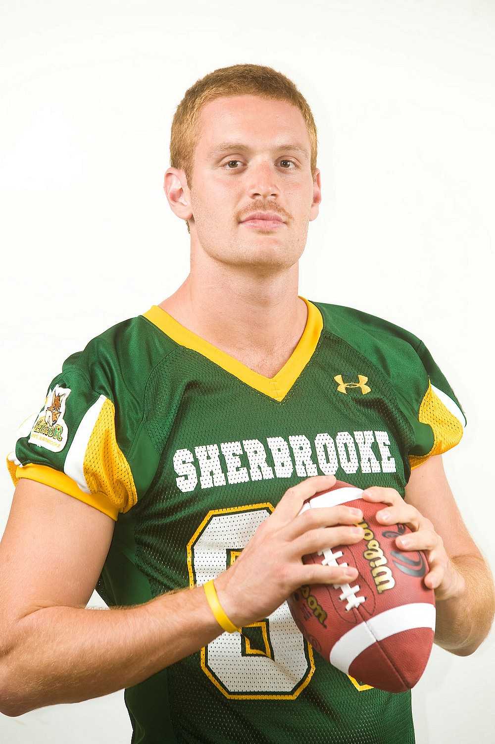 Le vétéran quart-arrière du Vert & Or de l’Université de Sherbrooke a reçu un chèque de 1500 $ des mains du président de la formation montréalaise, Larry Smith, hier au cours d'une cérémonie précédent le match face aux Blue Bombers de Winnipeg. Ce montant lui a été remis pour souligner son implication sociale et son leadership dans son milieu.