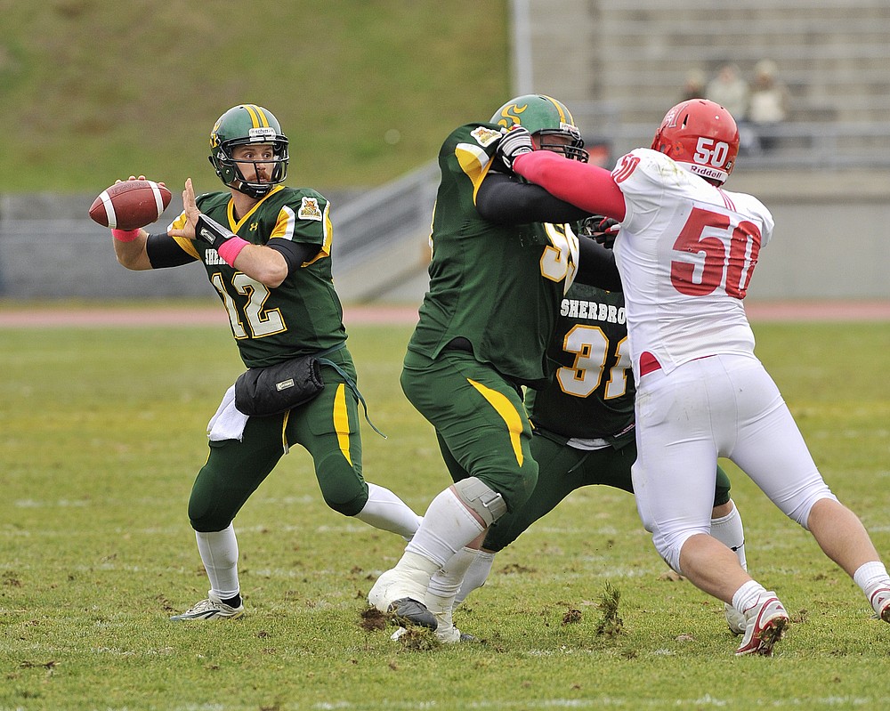 Avec 15 passes complétées, portant son total en carrière à 620, Jean-Philippe Shoiry est devenu le deuxième plus prolifique quart-arrière de la Ligue de football universitaire du Québec samedi après-midi dans une victoire sans équivoque de 43 à 8 du Vert & Or face aux Redmen de l’Université McGill. Jumelée à la défaite des Gaiters de l’Université Bishop’s face aux Carabins de l’Université de Montréal, cette victoire a permis aux Sherbrookois de s’emparer du troisième rang du classement général et de se qualifier pour les séries éliminatoires pour la troisième fois de leur histoire.