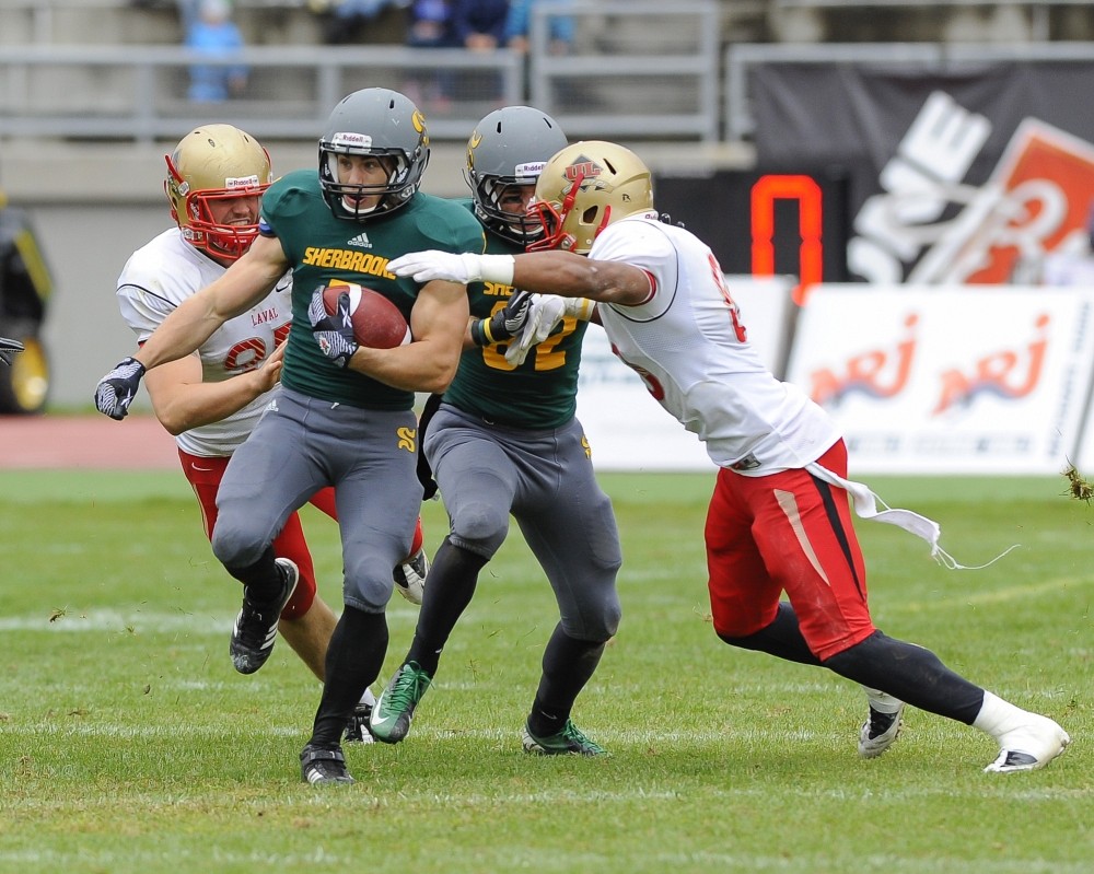 Il n’y avait qu’une vingtaine de secondes d’écoulées au premier quart lorsque Tristan Grenon a rejoint Mathew Norzil dans la zone payante à l’aide d’une passe de 63 verges. Dès cet instant, les partisans du Vert & Or ont su que l’après-midi serait longue, samedi au stade de l’Université de Sherbrooke. C’est finalement avec en poche une victoire sans équivoque de 48 à 10 que le Rouge et Or est reparti vers l’Université Laval.