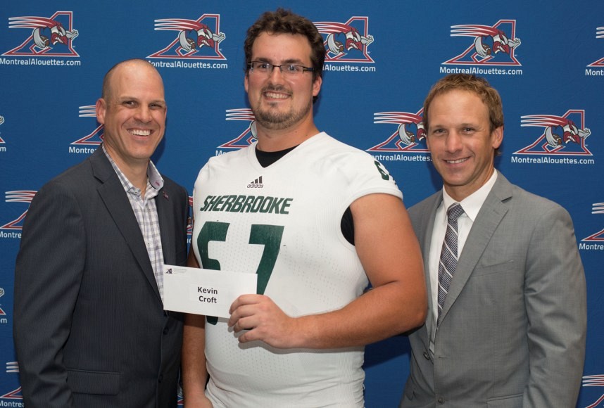 Le vétéran joueur de ligne à l’attaque de l’équipe de football Vert & Or Kevin Croft a reçu jeudi à Montréal une bourse de soutien à la réussite académique et sportive de 1500 $. Il est l’un des 25 récipiendaires pour la saison 2013.