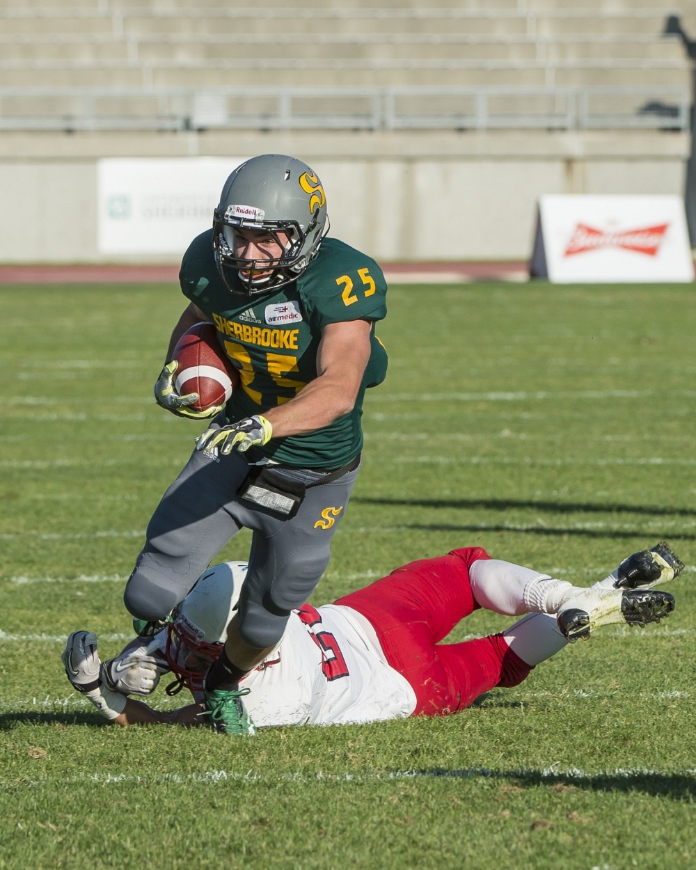 Les secondeurs Olivier Goulet-Veilleux et Alexandre Gagné ont dominé au chapitre des plaqués dans le camp sherbrookois avec chacun quatre plaqués en solo et un plaqué pour perte de terrain. Gagné a ajouté un rabattement du quart.