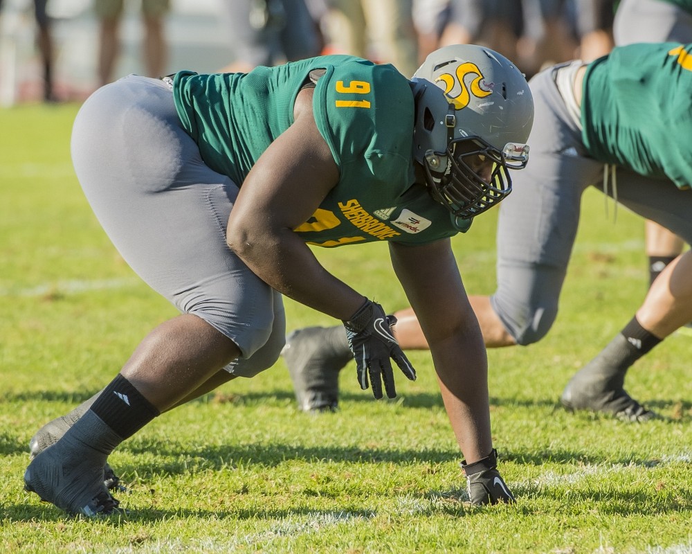 Plus tard lors du brunch, le titre de joueur de ligne par excellence de la dernière saison a été accordé au boursier des Alouettes de Montréal, Rami Saintus. Le footballeur et étudiant en génie a fait oublier deux saisons de mise à l’écart en raison de blessures graves et a joué un rôle important tout au long de l’automne 2014. Le joueur de ligne a été actif dans toutes les phases de jeu défensives du Vert & Or, effectuant 15 plaqués dont 11 en solo, 2,5 plaqués pour pertes, deux rabattements du quart-arrière adverse. Il a recouvré une échappée, en plus d’en provoquer un autre. Saintus aurait très bien pu mériter le titre de joueur ayant effectué le retour le plus remarqué, mais c'est plutôt son coéquipier Gaël Bernard-Perron qui a mérité cet honneur. Il faut dire que Bernard-Perron est lui aussi revenu en force en 2014, avec 10 plaqués en solo et 11,5 au total, en plus d’intercepter le ballon à deux reprises; le plus haut total de l’équipe à ce chapitre.