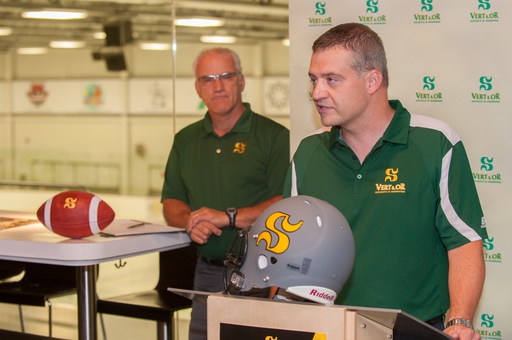 En conférence de presse, le mercredi 2 septembre au Caffuccino du Complexe sportif Thibault GM, l'organisation du Vert & Or a donné la parole aux représentants de deux de ses principaux partenaires financiers, Labatt et Air-Médic, de même qu’à son Grand capitaine, le député provincial de Sherbrooke Luc Fortin. Ce dernier a d'ailleurs promis d’assister à toutes les rencontres locales du Vert & Or.