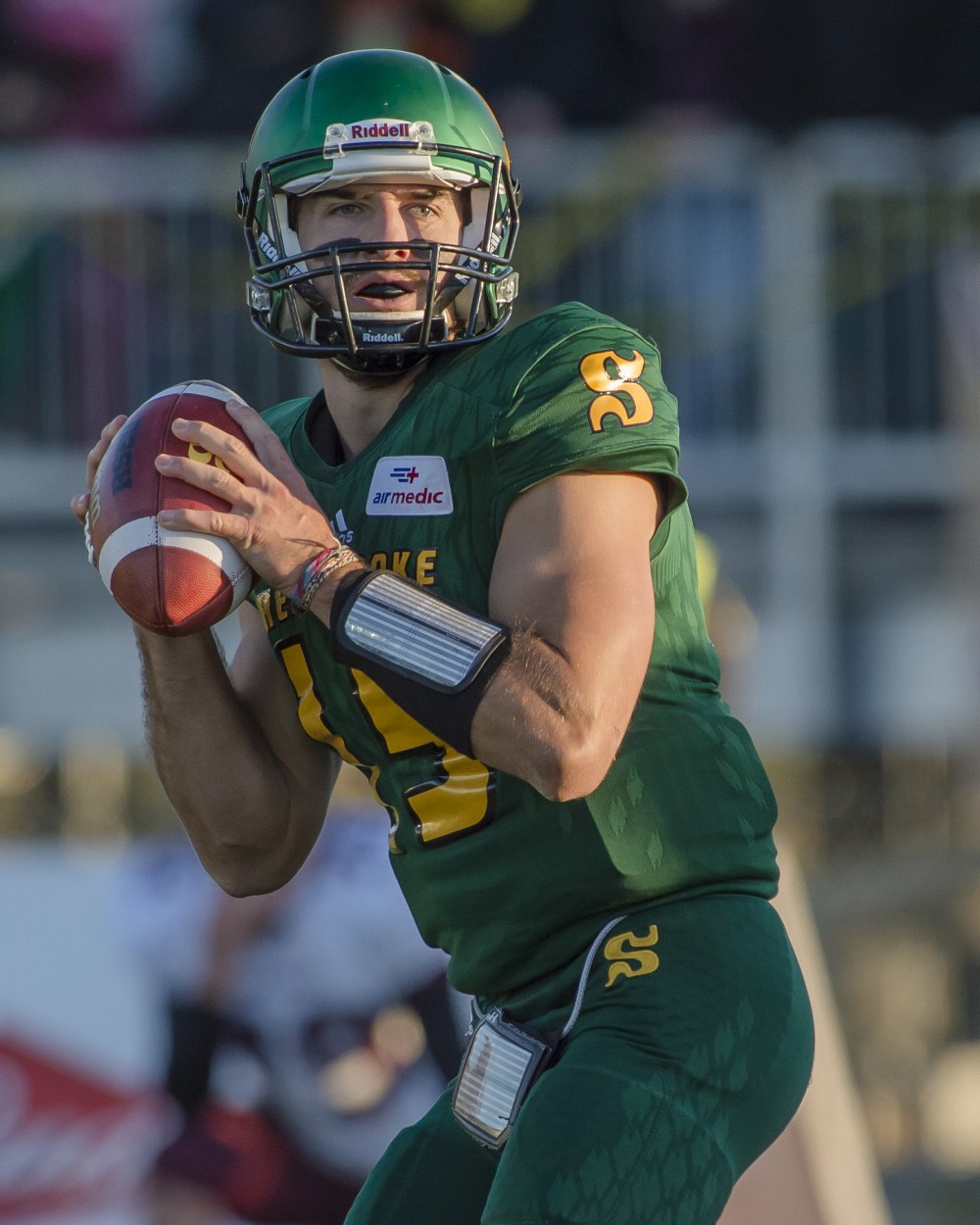 À son troisième départ, le pivot sherbrookois Jean-Christophe Bourque St-Hilaire a été meilleur plus le match progressait. Le vétéran a terminé sa journée avec 19 passes complétées sur 28 pour des gains de 319 verges, même si son équipe n’a pas marqué par la voie des airs, il a causé beaucoup d’ennuis à la tertiaire des Stingers, repérant Jean-Raphaël Moisan neuf fois pour 144 verges et Frédérick Caron, à quatre reprises pour 98 verges. Le Vert & Or a frôlé les 500 verges, avec un impressionnant total de 495 sur 67 jeux, dont 27 premiers essais. Le jeu au sol a également contribué significativement avec une récolte de 197 verges, dont 53 obtenu par Gabriel Polan.