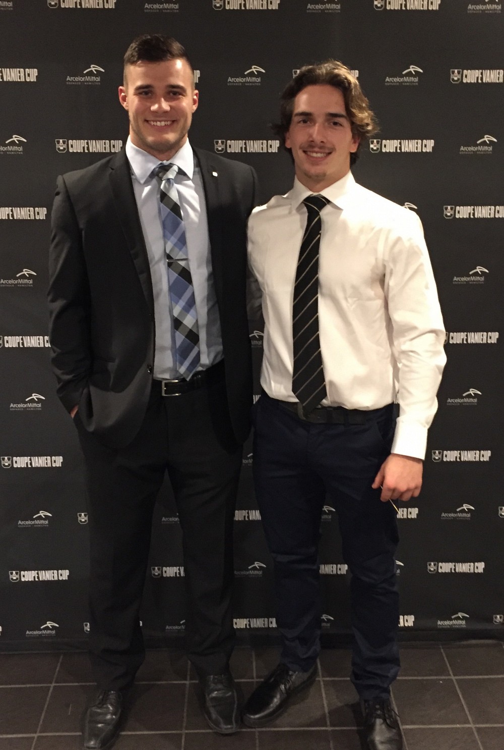 Les deux ont été partants pour les huit rencontres du plus récent calendrier régulier du Vert & Or. Ils sont accompagnés au Centre des congrès d’Hamilton, du coordonnateur défensif du Vert & Or, Guillaume Boucher.
