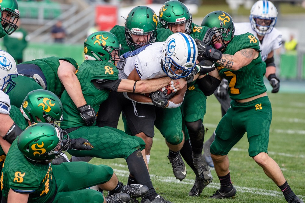 Lors du deuxième match à domicile du Vert & Or, nos porte-couleurs affrontaient les imbattus Carabins de l’Université de Montréal. Après un match incroyable, sous les encouragements d’une foule en délire, la marque finale du match est de 23-15 en faveur de notre Vert & Or. Une victoire inoubliable à célébrer pour la troupe de Mathieu Lecompte, et pour ses partisans!