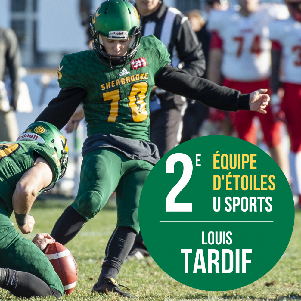 La formation de football Vert & Or voit l’un de ses joueurs être retenu parmi les étoiles universitaires canadiennes pour une troisième saison consécutive, suite à la sélection de son botteur de précision Louis Tardif sur la deuxième équipe d'étoiles U Sports.