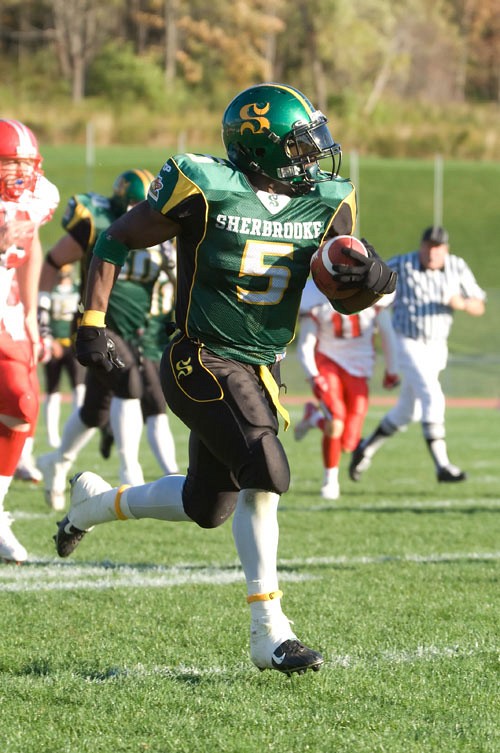 L'étudiant au certificat multidisciplinaire a sans aucun doute été le joueur du match dans la victoire de 24-14 du Vert & Or face aux Stingers, samedi soir au stade de l'Université de Sherbrooke. Ses 279 verges au sol constituent un record d'équipe et la cinquième meilleure performance de l'histoire de la Ligue de football universitaire du Québec.