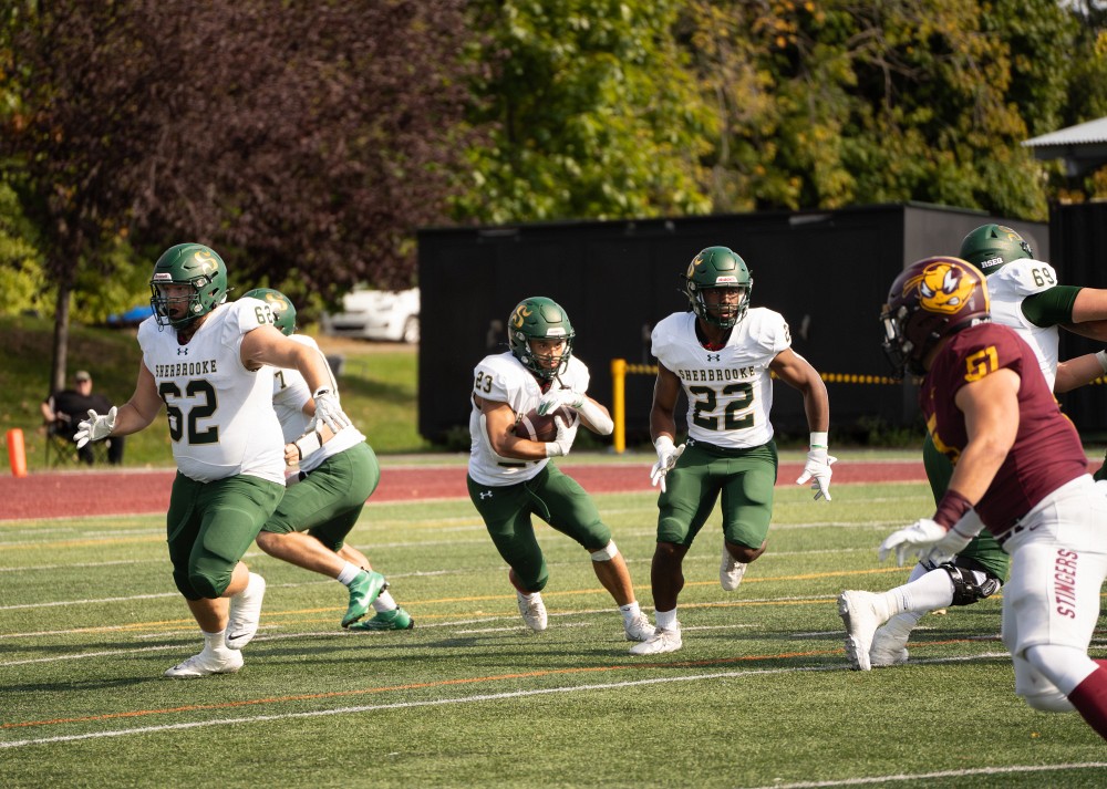 Il ne restait que deux minutes au match lorsque les Stingers de l’Université Concordia ont devancé le Vert & Or de l’UdeS au pointage. Alors que le Vert & Or menait 24-13 en première demie, une montée convaincante de l’offensive lors d’une séquence à l’attaque des Montréalais aura finalement été le coup de grâce à ce match, terminé 35-27 en faveur de l’équipe hôte du match.