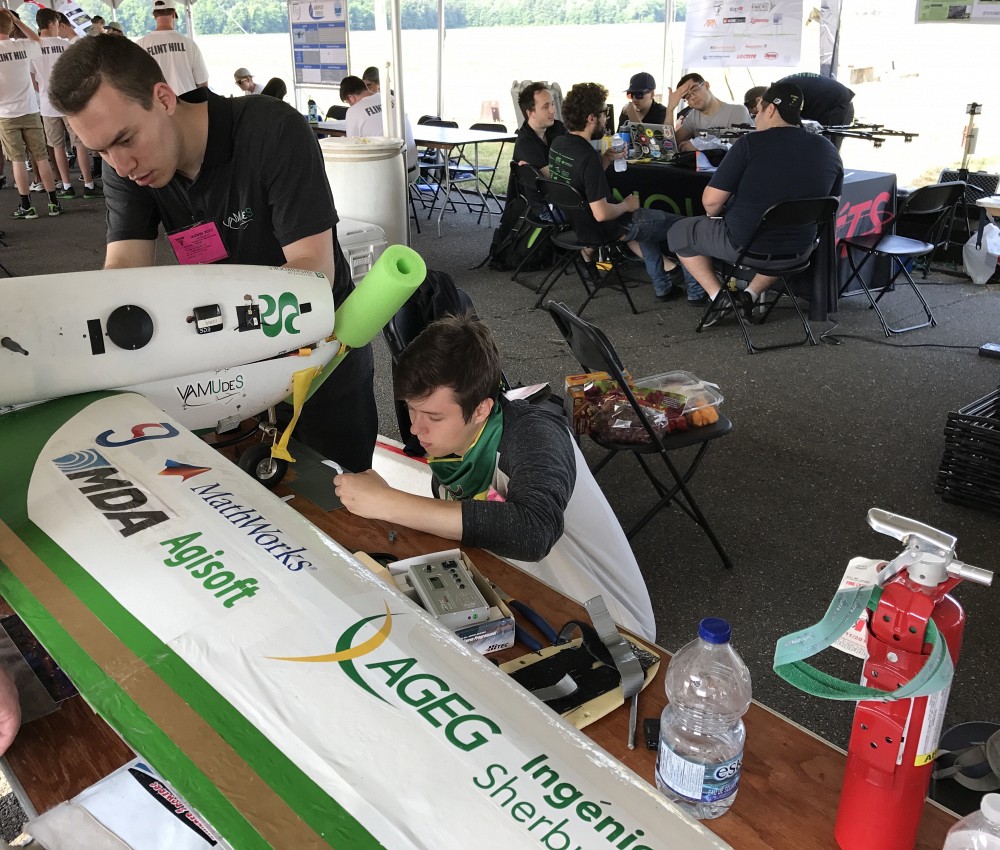 Pour une deuxième année consécutive, le club étudiant VAMUdeS, véhicule aérien miniature de l’Université de Sherbrooke, a dominé la compétition de l’Association for Unmanned Vehicle Systems International (AUVSI) Student Unmanned Aerial Systems (SUAS) qui se déroulait au Maryland du 14 au 17 juin dernier. 40 équipes provenant de partout à travers le monde ont tenté un vol sur les 59 qui étaient inscrites, à partir de la base militaire Webster Field. « Les nombreuses heures de préparation et de simulation nous ont permis d'atteindre le niveau de professionnalisme et d'excellence opérationnelle requis pour tenir tête aux meilleures équipes du monde », soutient Charles-Alexis Carrier, étudiant au baccalauréat en génie informatique.