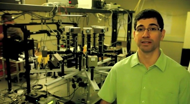Avec ses collaborateurs, le professeur Yves Bérubé-Lauzière, du Département de génie électrique et de génie informatique, travaille depuis quelques années à un projet de tomographe optique utilisant le laser. La puissante lumière du laser se diffuse à l'intérieur du corps d’un petit animal et des détecteurs du tomographe disposés autour de la bête enregistrent la lumière qui en ressort. À l'aide d'algorithmes basés sur un ensemble de formules mathématiques décrivant la propagation de la lumière dans les tissus biologiques, le tomographe reconstitue une image 3D de l'intérieur de l'animal.