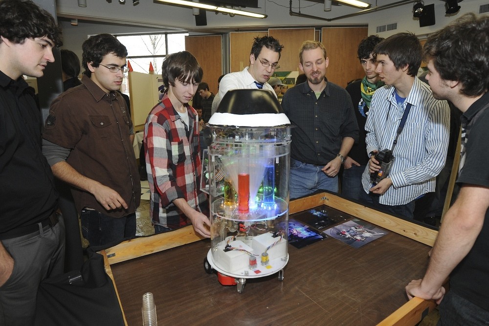 Cette année, les étudiantes et étudiants en génie électrique et en génie informatique de l’Université de Sherbrooke avaient le mandat de créer un robot visant à favoriser le contact entre la robotique et les jeunes du secondaire et du cégep tout en apportant un service ou une commodité à l’être humain.