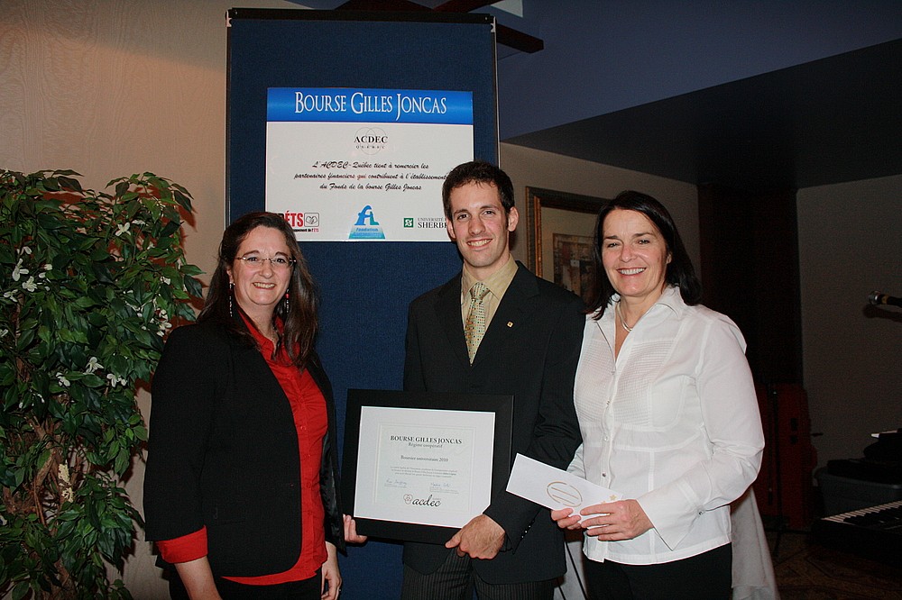 Parce qu'il a su se démarquer avec brio lors de ses quatre stages en régime coopératif et parce qu'il a démontré un engagement social remarquable au cours de ses études en génie mécanique, Julien Lépine a reçu la bourse Gilles-Joncas, faisant de lui le stagiaire universitaire de l'année, selon le comité Québec de l'Association canadienne de l'enseignement coopératif.