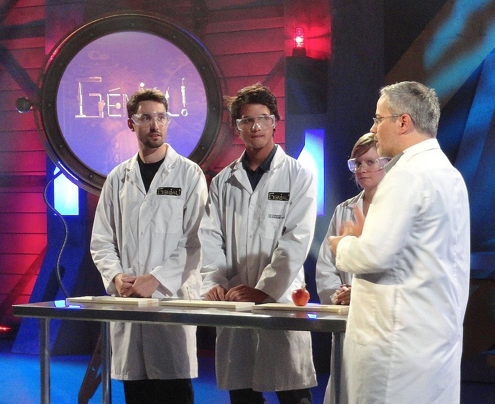 À Télé-Québec dès le 15 septembre, trois étudiantes et un étudiant de l'UdeS présenteront des démonstrations souvent spectaculaires dans le cadre de l'émission d'éveil scientifique Génial! Pour la nouvelle saison, les producteurs se sont adjoints la collaboration de l'UdeS, qui agit comme partenaire scientifique de cette émission familiale qui veut faire découvrir la science sous un angle à la fois éducatif et divertissant. Ainsi, en plus des étudiants en sarraus, plusieurs experts de l'UdeS contribuent à garantir la crédibilité scientifique de l'émission. L'UQAM est aussi partenaire de l'émission commanditée et présentée par l'ordre des ingénieurs du Québec.