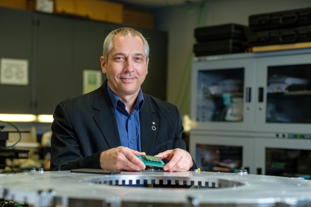 Le professeur Réjean Fontaine, du Département de génie électrique et de génie informatique, dirige actuellement un projet d’envergure qui bénéficie d’une subvention de l’ordre de 17,2 M$ de la Fondation canadienne pour l’innovation (FCI) et du gouvernement du Québec. Ce projet, qui regroupe 5 institutions québécoises, porte le nom de « Réseau d’intelligence numérique distribuée : développement de microsystèmes disruptifs et à faible coût pour le traitement des données en périphérie ». Il veut permettre aux chercheurs utilisant cette infrastructure de ramener l’intelligence plus proche, directement dans les appareils, au lieu de faire voyager l’information à des centaines ou milliers de kilomètres vers l’infonuagique. Et pour réussir à faire cela, on doit développer des microsystèmes complexes et ultrasophistiqués. C’est ici qu’entre en jeu cette équipe multidisciplinaire.