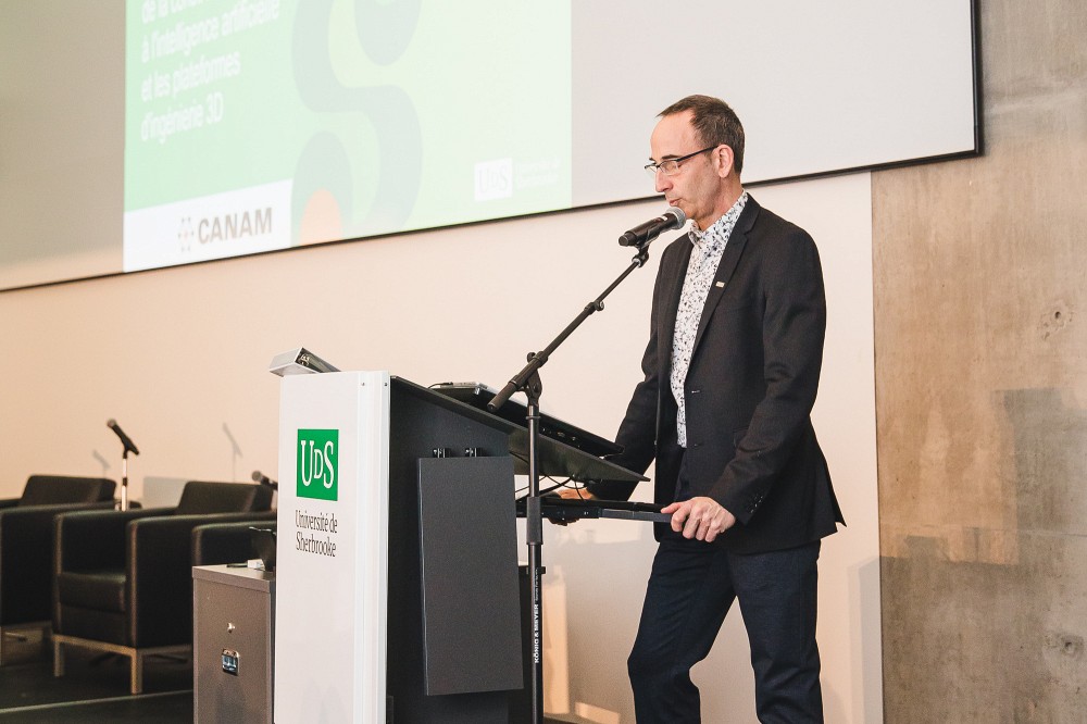 Ils étaient près de 200 à être captivés par les propos des 6 conférenciers de Groupe Canam et du doyen de la Faculté de génie lors de l’événement qui a eu lieu au Campus de Longueuil de l’Université de Sherbrooke le mardi 20 février dernier. Au menu : l’innovation grâce aux plateformes d’ingénierie 3D et l’intelligence artificielle… et humaine!