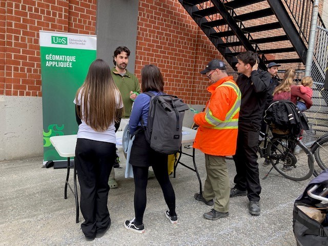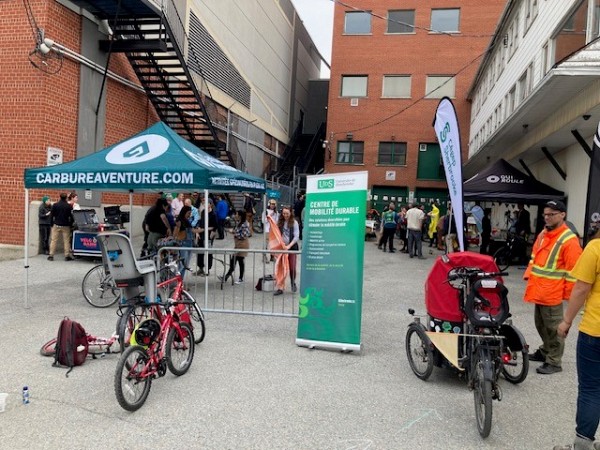 La diffusion était précédée d'un 5 à 7 dans la cour arrière de la Maison du cinéma où il était possible d'échanger avec des personnes présentes aux kiosques de projets étudiants et d'organismes vélo de Sherbrooke. David Lapointe, étudiant à la maîtrise en géomatique appliquée, et le professeur Philipppe Apparicio étaient présents pour parler vélo!