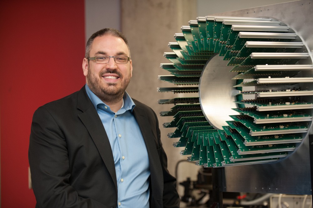 « À ce jour, les scanners TEP en imagerie cérébrale permettent de localiser, dans le meilleur des cas, des anomalies de l’ordre de 2,5 mm, ce qui n’est pas toujours suffisant pour poser un diagnostic précis, notamment pour comprendre les processus liés à l’évolution de la maladie d’Alzheimer. Les travaux du GRAMS au cours des dernières années ont permis de développer des détecteurs à résolution submillimétrique pour l’imagerie des petits animaux. Les travaux de Jonathan permettront d’adapter cette technologie à l’imagerie du cerveau pour obtenir une qualité d’image inatteignable avec les technologies actuelles », mentionne le Pr Fontaine.