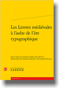Le livre Les lettres médiévales à l’aube de l’ère typographique sous la direction de Renaud Adam, Jean Devaux, Nadine Henrard, Matthieu Marchal et Alexandra Velissariou vient de paraître chez Classiques Garnier. Plus de détails sur le site de l'éditeur ici.