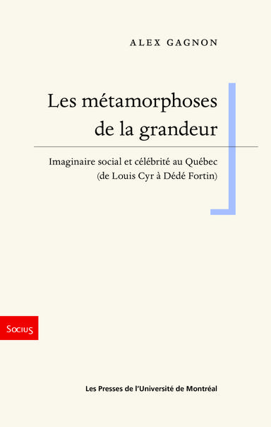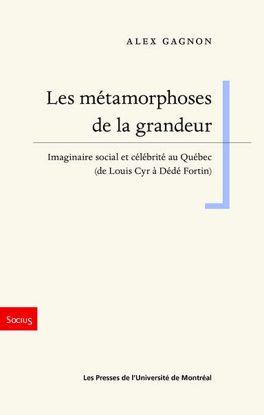Le livre Les métamorphoses de la grandeur. Imaginaire social et célébrité au Québec (de Louis Cyr à Dédé Fortin) d’Alex Gagnon vient de paraître dans la collection « Socius » aux Presses de l’Université de Montréal.
