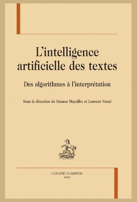 Le livre L’intelligence artificielle des textes. Des algorithmes à l’interprétation sous la direction de Damon Mayaffre et Laurent Vanni vient de paraître chez Honoré Champion.