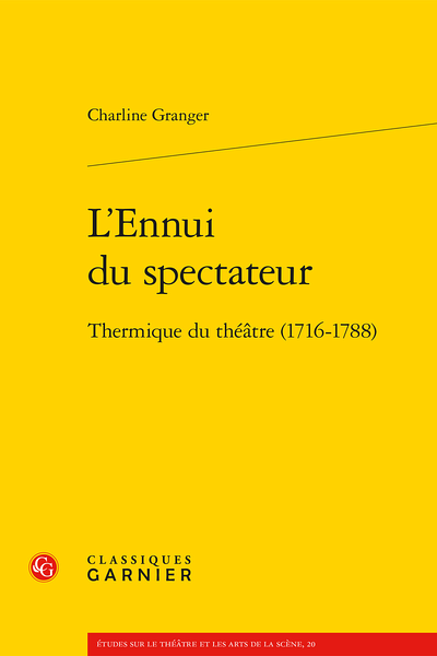 Le livre L’Ennui du spectateur. Thermique du théâtre (1716-1788) de Charline Granger vient de paraître chez Classiques Garnier.