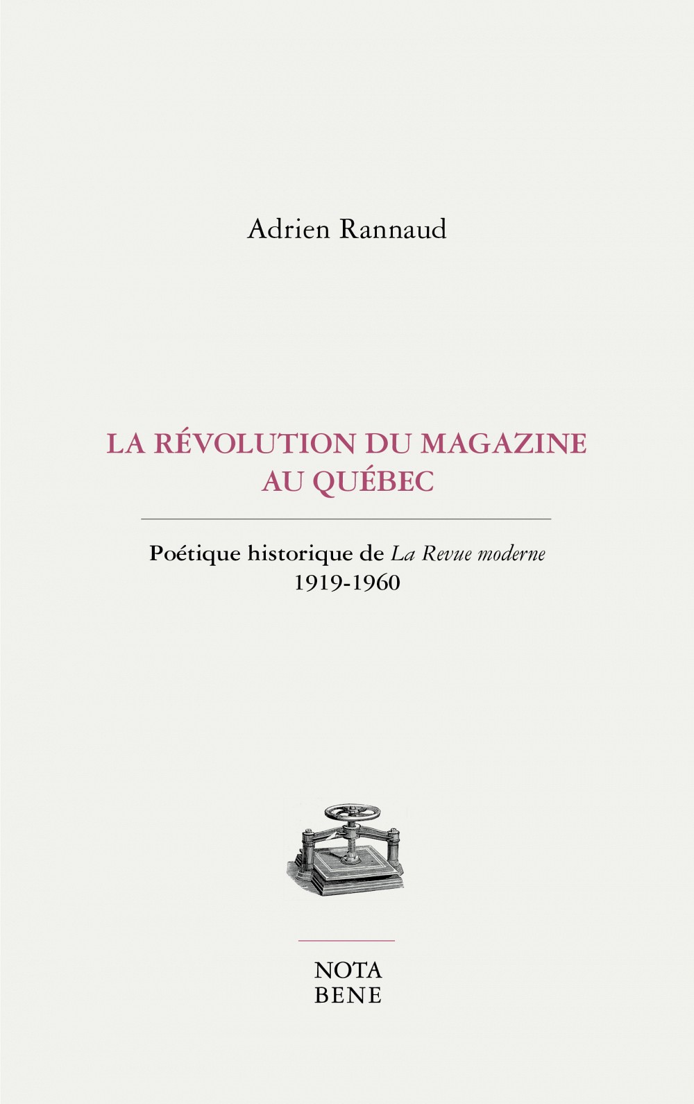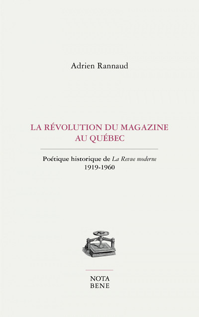 Le livre La révolution du magazine au Québec. Poétique historique de La Revue moderne 1919-1960 d’Adrien Rannaud paraîtra le 27 octobre prochain chez Nota Bene.