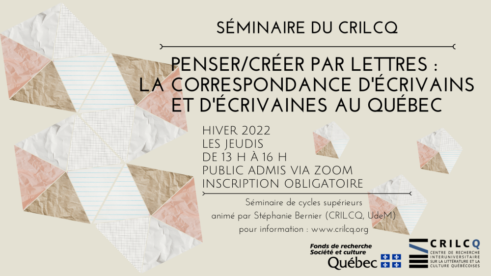 Séminaire du CRILCQ « Penser/créer par les lettres : la correspondance d’écrivains et d’écrivaines au Québec »