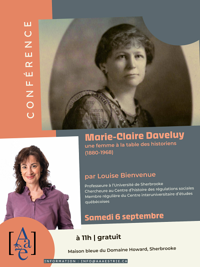 Louise Bienvenue (U. de Sherbrooke, cochercheuse du GRÉLQ) présentera une conférence au sujet de l'historienne Marie-Claire Daveluy, dans le cadre du Rendez-vous d'Howard.