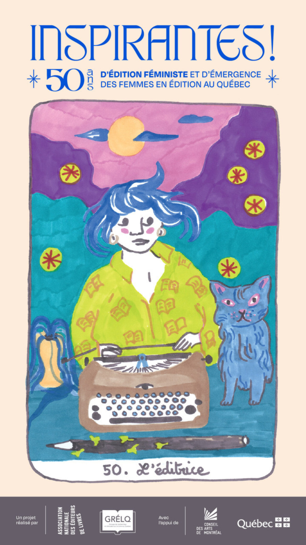 Le Groupe de recherches et d'études sur le livre au Québec (GRÉLQ) et l'Association nationale des éditeurs de livres (ANEL) vous invitent à découvrir l'exposition « Inspirantes ! 50 ans d’édition féministe et d’émergence des femmes en édition au Québec », présentée au Salon du livre de Montréal du 19 au 23 novembre 2025.