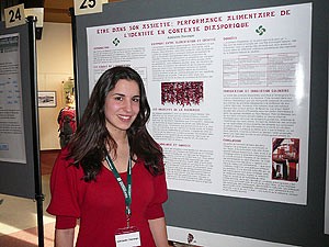 Adélaïde Daraspe a présenté de façon exemplaire ses recherches portant sur la place qu'occupe l'alimentation dans le quotidien du peuple basque. Sur son affiche scientifique, l'étudiante a su illustrer avec brio comment, en contexte d'immigration, l'alimentation est devenue une marque identitaire que chaque individu doit négocier ou réinventer pour composer avec la culture du pays hôte.