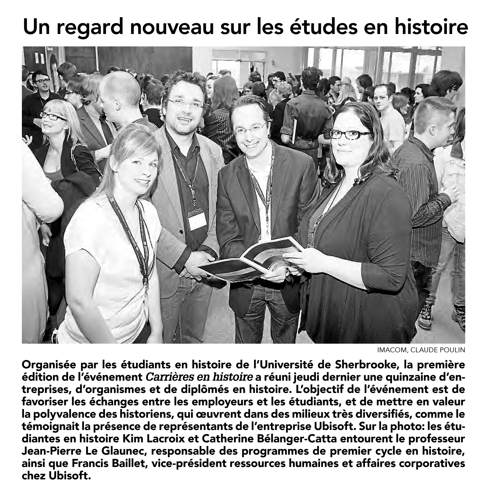 Organisée par les étudiants en histoire de l'Université de Sherbrooke, la première édition de l'événement Carrières en histoire a réuni jeudi dernier une quinzaine d'entreprises, d'organismes et de diplômés en histoire.