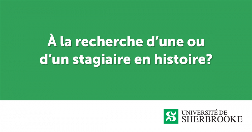 Vous avez des projets pour votre organisme? Vous aimeriez recevoir le soutien d'une ou d’un stagiaire universitaire? Le Département d’histoire de l’Université de Sherbrooke peut vous aider. En effet, dans le cadre du cours Stage, pratique et expérimentation, les finissantes et finissants du baccalauréat en histoire doivent effectuer un stage non rémunéré de 70 heures, relié à l’histoire, auprès d’un organisme au cours de l’hiver 2022.
