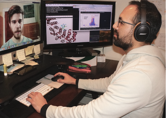 Peu peuvent attribuer à la pandémie leurs réussites ou leurs bons coups, mais le duo de scientifiques Leyton & Rioux-Chevalier peut à tout le moins se vanter d’avoir retiré un maximum de résultats d’une circonstance qui, au départ, leur aura occasionné quelques maux de tête. En effet, alors que son stage de l’hiver 2020 devait se dérouler en présentiel dans les laboratoires de l’IPS, Alexis Rioux-Chevalier a dû, avec l’aide du professeur Victor Jeffrey Leyton, redesigner complètement son expérience. Le stage offert par le laboratoire Leyton, qui avait pour cible deux obstacles rencontrés dans le transport d’une molécule anticorps utilisée dans le traitement de certains cancers, devait se faire sur place avec les infrastructures de haute technologie disponibles à l’IPS. L’objectif global de cette recherche était d’améliorer la performance du camion de livraison (peptide) dont le rôle est d’amener la molécule anticorps à bon port (à l’intérieur du noyau de la cellule). Ne reculant devant rien, le jeune bachelier a travaillé d’arrache-pied pour que ses travaux puissent être effectués via un logiciel de chimio-informatique spécialisé plutôt que directement en laboratoire. Ce passage obligé aura finalement permis au jeune stagiaire de développer un algorithme qui a propulsé la recherche vers de nouveaux cieux jusqu’alors inexplorés.