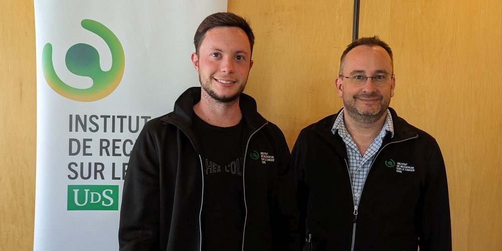 Alexis Perreault, récipiendaire de deux bourses de formation au doctorat : une du FRQS et une des IRSC, accompagné du Pr François-Michel Boisvert, directeur scientifique de l'IRCUS