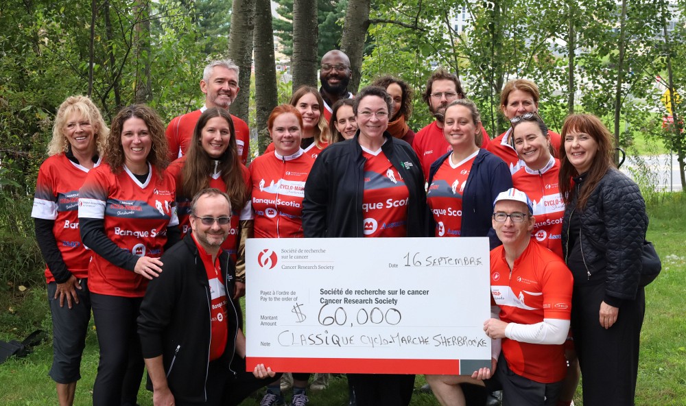 La 5e édition de la Classique cyclo-marche Sherbrooke présentée par Banque Scotia et BMO Assurance au profit de l'Institut de recherche sur le cancer de l'Université de Sherbrooke (IRCUS) et de la Société de recherche sur le cancer (la Société) s'est tenue le 16 septembre 2023 à l'IRCUS. Dans une ambiance festive empreinte de dévouement envers la cause, l’événement a accueilli près de 200 participants et a permis de recueillir la somme record de 60 000 $.
