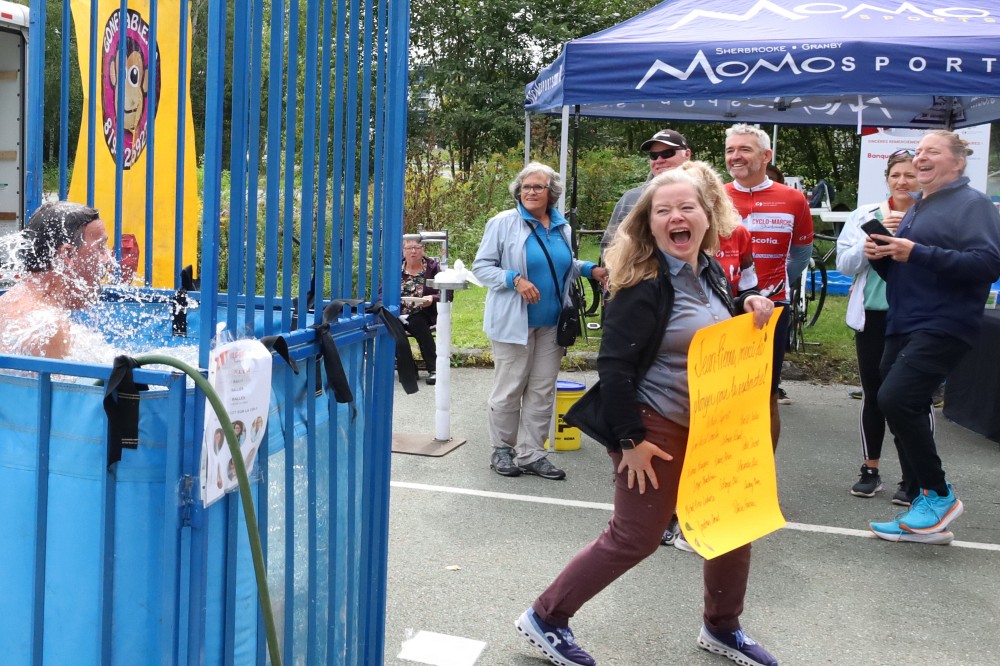 Nous avions un objectif très ambitieux cette année que nous avons réussi à atteindre grâce à des personnes dévouées à la cause. Je remercie infiniment Jean-Pierre Perreault, vice-recteur de l’Université de Sherbrooke, ainsi que Nathalie Rivard, Vice-doyenne aux études supérieures, à la recherche et à l’innovation, qui ont contribué à ce nouveau record en acceptant que les participants les fassent tomber à l’eau plus d’une fois permettant d’ajouter plus de 1 000 $ le jour-même de l’évènement! Un merci spécial également à Eva Villalba, directrice générale de la Coalition Priorité Cancer au Québec, qui a créé une équipe en Hommage à Sylvie Breton, une patiente partenaire d'exception engagée à la Coalition et à l'IRCUS, ayant rassemblé toute sa famille. La Coalition fut également un généreux commanditaire de l'événement , dont les fonds permettront à l'IRCUS de financer la recherche sur les cancers rares, une cause importante pour Sylvie.