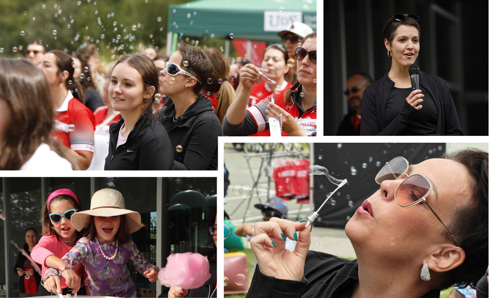 Sandra a convié la foule à une envolée de bulles d’espoir. Portées par le vent, chacune symbolisait un hommage, un vœu, un message d’amour — en l’honneur ou à la mémoire d’une personne touchée par le cancer.