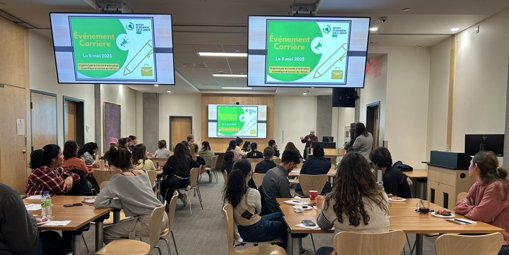 L'Institut de recherche sur le cancer de l’Université de Sherbrooke (IRCUS) a vibré d’une énergie exceptionnelle lors de sa toute première Journée carrière en mai 2025. Ce n’était pas une journée de recherche ordinaire, mais une rencontre entre deux univers : la relève étudiante et le monde professionnel. Inspiré par l’enthousiasme suscité, le Comité d’animation scientifique et sociale de l’IRCUS (CASSI) prépare une deuxième édition au printemps 2026 afin de poursuivre la mise en lumière des parcours accessibles après une formation universitaire en recherche à l’IRCUS.