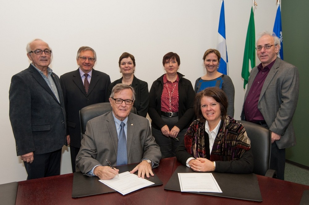 L’Association des professeures et professeurs retraités de l’Université de Sherbrooke (APPRUS) a fait don de son fonds d’archives au Service des bibliothèques et archives de l’UdeS. Une séance de signatures officielle s’est tenue le 19 novembre. Plusieurs représentants de l’UdeS étaient présents pour cette séance, dont Pre Lucie Laflamme, vice-rectrice aux études et Sylvie Belzile, directrice générale du Service des bibliothèques et archives de l’UdeS ainsi que Pr André Petit, président de l’APPRUS.